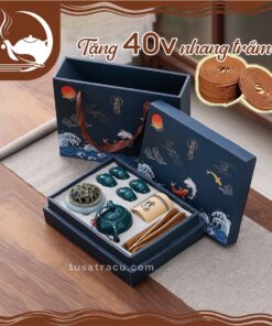 Bộ ấm trà men ngọc kèm lư xông đốt trầm hương trọn bộ 9 chi tiết (Tặng túi xách cao cấp)