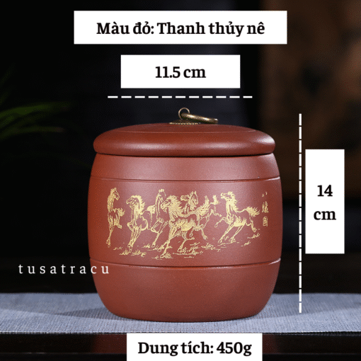 – Nắp hộp đựng trà gốm tử sa Nghi Hưng có tay cầm giúp mở đóng nhanh chóng tiện lợi, nắp vừa khít với thân giúp nắp trà kín hơn, không cho không khí vào trong hũ, giúp bảo quả trà/ đồ bên trong hũ an toàn. Hoa văn hộp đựng trà gốm tử sa Nghi Hưng in nổi màu vàng đồng giúp nổi bật vẻ đẹp tinh tế, sang trọng của hũ đựng trà