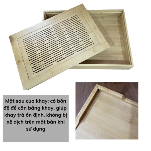 – Mặt sau của khay trà đựng ấm chén: có bốn đế để cân bằng khay, giúp khay trà ổn định, không bị xê dịch trên mặt bàn khi sử dụng